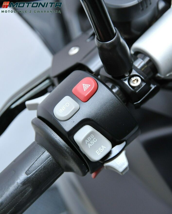 abs, bagaznik, kufer, podgrzewane manetki, elektryczny starter, immobilizer, kontrola trakcji (ASR), rozrusznik elektryczny, szyba motocyklowa